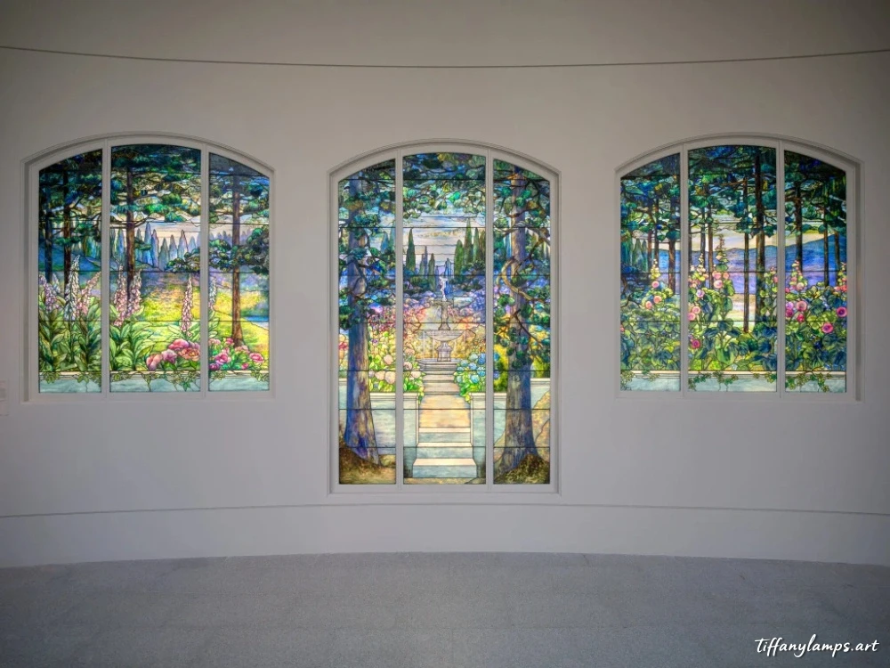 其余的保存在蒂芙尼玻璃的新城收藏馆,这是长岛市的一个私人档案馆,包含 100 多盏灯、40 扇窗户和近 50 万件平板玻璃。该藏品可通过预约获得,其中的作品偶尔会在临时展览中在全国巡回展出。