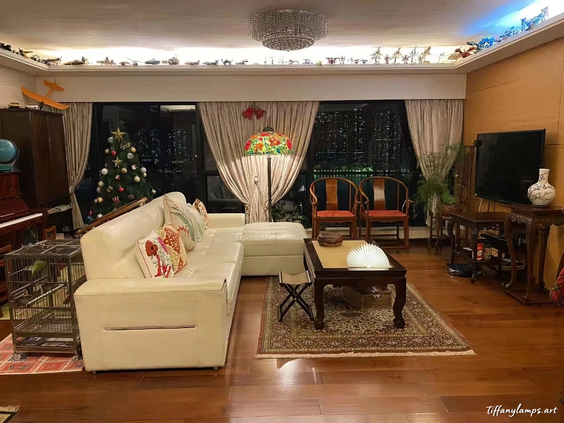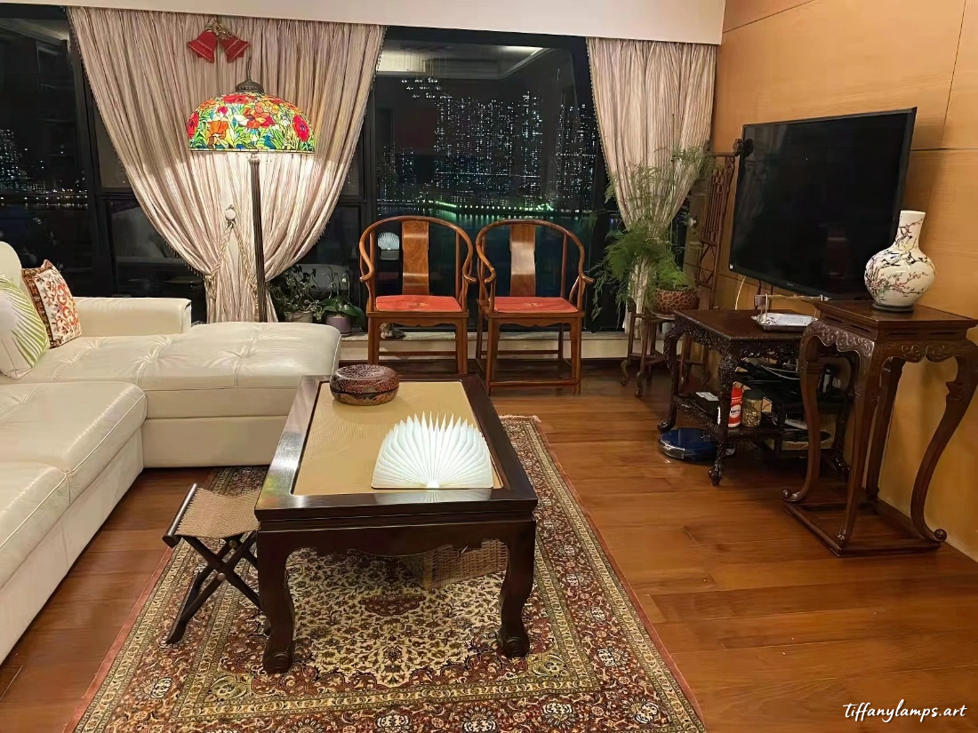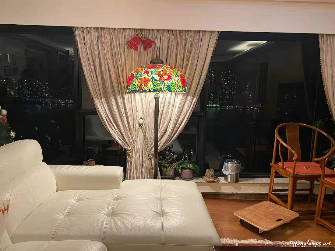 这款虞美人蒂凡尼落地灯,光线绚丽而温暖,极大地提升了空间的艺术氛围,是视觉焦点,也是整个空间搭配的点睛之笔。