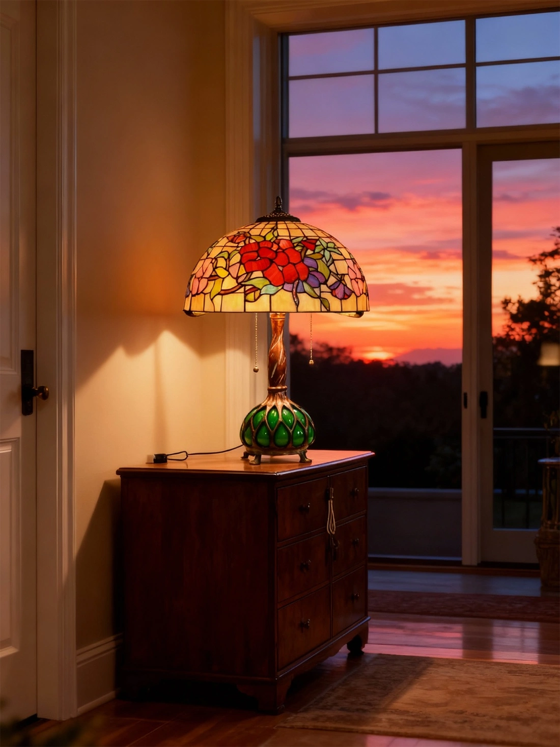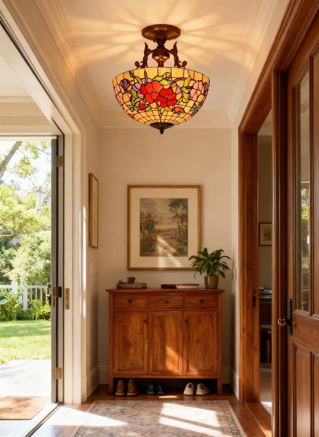 光影的魔法:当灯光亮起,彩色玻璃会在墙上投下斑驳的光斑,就像阳光穿过花丛,温柔而治愈。