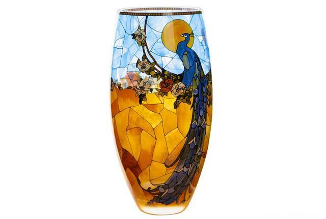 “ Favrile”一词的本意就是手工制作,这种玻璃花瓶继承和发扬了古代玻璃手工制造的技术传统。蒂凡尼希望使这种古老的工艺重新焕发青春,并作为公司重点发展的一项技术。如蒂凡尼创作的孔雀瓶,其最引人注目之处是通体适形的纤细柔软的孔雀羽毛纹理。