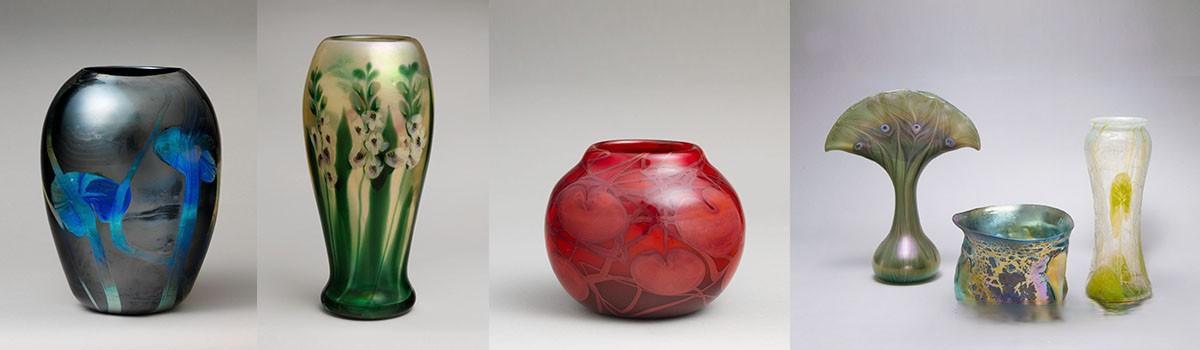 “ Favrile”玻璃有多个系列,除孔雀系列外,还有晨曦、水仙、含蓄的色彩、土著风情、浮雕的形式、埃及风格、砂金石和玛瑙等系列。这些作品既有带着自然气息和异国情调的图案,也有抽象或近似抽象的肌理表现。彩虹般的色彩,珍珠质的光彩,自然图案中夹有波形蜿蜒的形式,是最典型的新艺术运动风格。